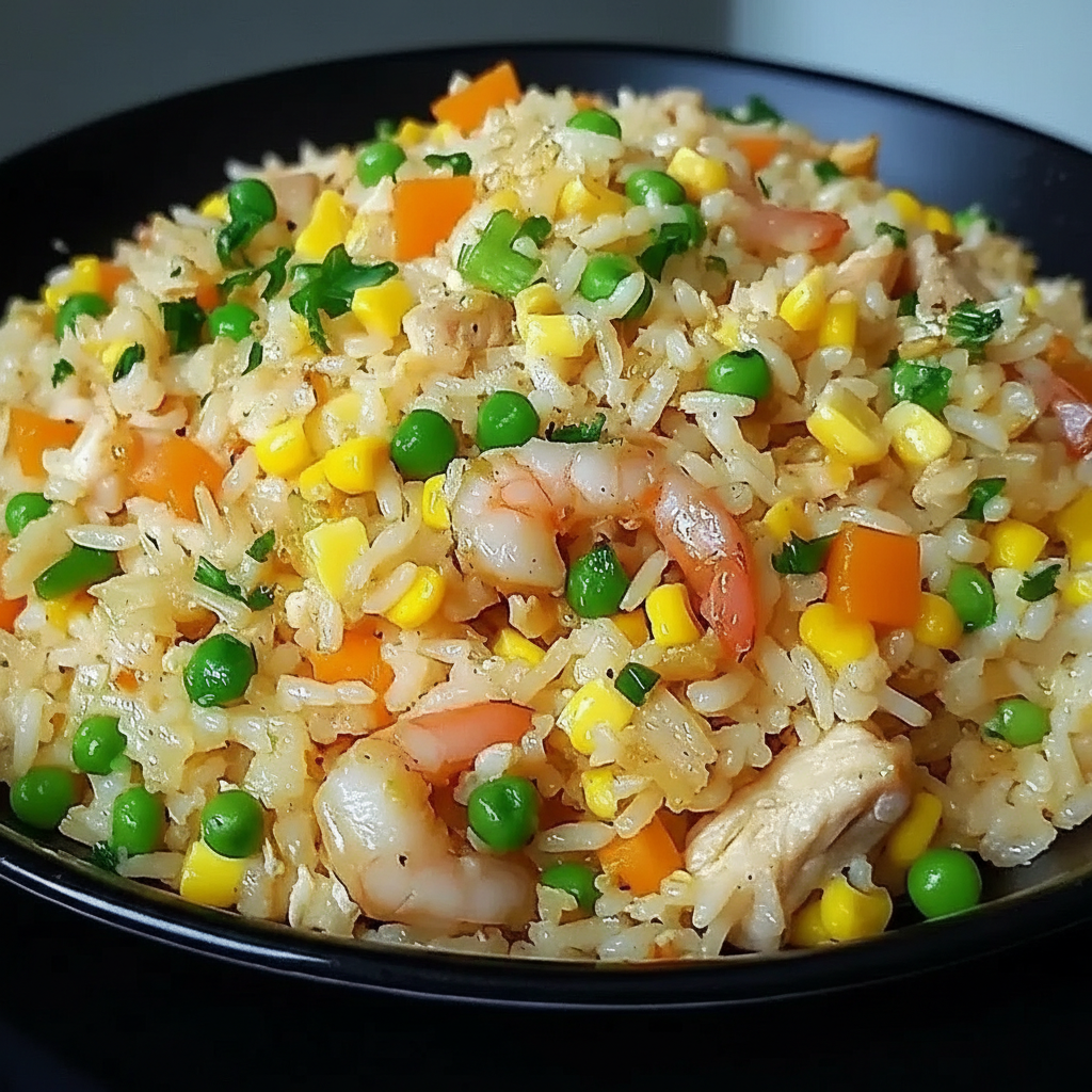 - Proteína Mixta: Combina pollo y camarones para un sabor más complejo.